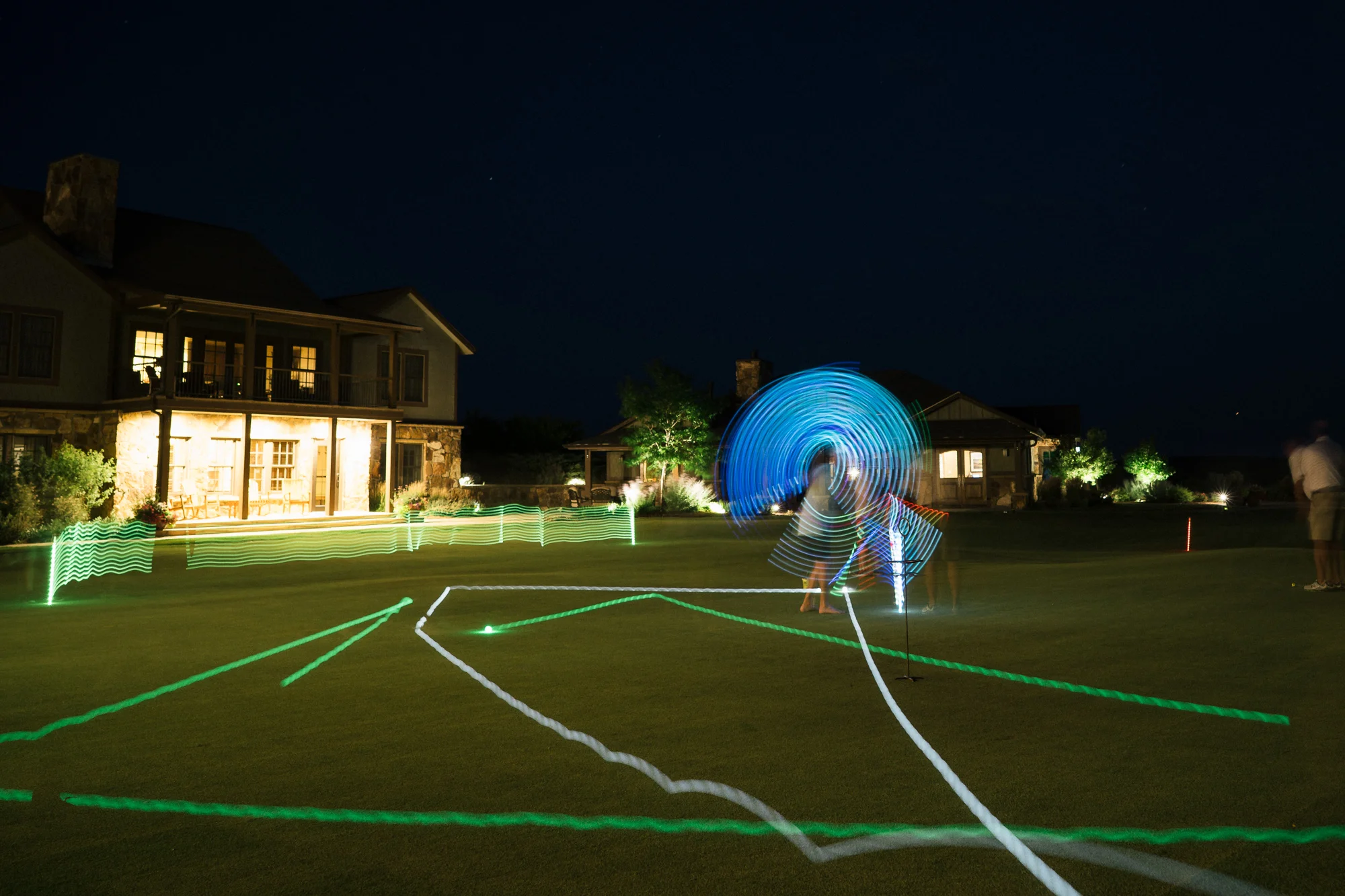 After our dinner, conversation, and a little hang we decided a putting contest was in order. Equipped with some AutoCorrect™ putters, a few glow balls, and questionable decision making we traversed the outer limits of the putting complex. Each time we moved away from the green towards a set of stairs, getting more audacious each with each step, we asked our hosts “Is this cool?”.